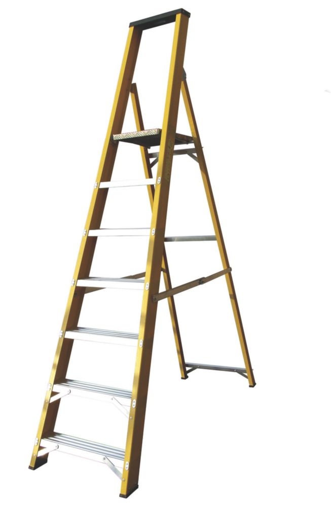 Robust non conductive fibreglass steps featuring rigid box section back arms with additional cross braces.